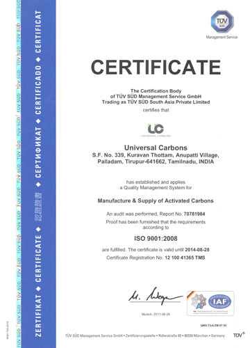 Quality is the hallmark of everything we do at Universal Carbons. Quality of activated carbon really begins with the raw material and we have complete control over ours as it is produced in house, this we believe is our edge in our endeavour to produce the finest quality of activated carbon.